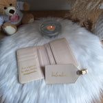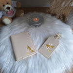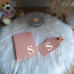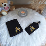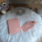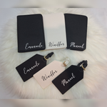 Kit passaporto premium, composto da un elegante porta passaporto e una tag valigia personalizzabili.